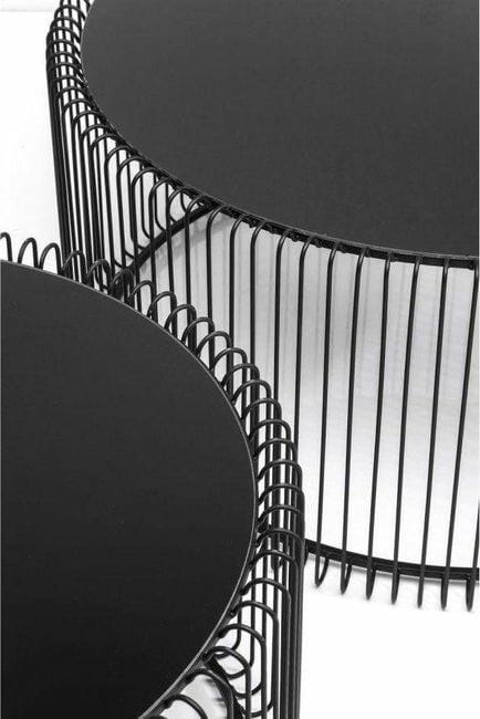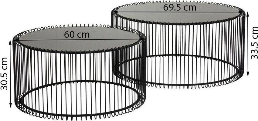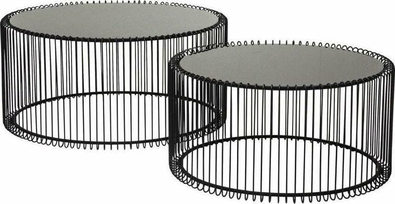KARE zestaw stolików kawowych WIRE czarny.Stoliki kawowe z serii Wire od Kare Design to klasyczna dekoracja wnętrz o nieszablonowych kształtach.Szklane blaty w połączeniu z żeliwnym i metalowym wykończeniem doskonale odnajdą się w nowoczesnych i awangardowych wnętrzach.Wymiary:1) śr. 60 cm / wys. 30,5 cm2) śr. 69,5 cm / wys. 33,5 cmWaga netto (zestawu): 12 kg.